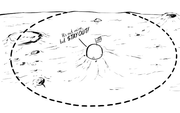 A “quasi-sovereignty” could hypothetically be set up at one of the poles of the Moon without directly being claimed. (Image: Drawn by Zach Weinersmith)