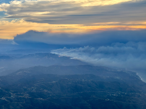 The 2025 Palisades fire in Los Angeles. Our guest Dr. Doug Dockery warns that pollution from wildfires will continue to threaten public health. (Photo: Frank Kovalchek, Flickr, CC BY 2.0)