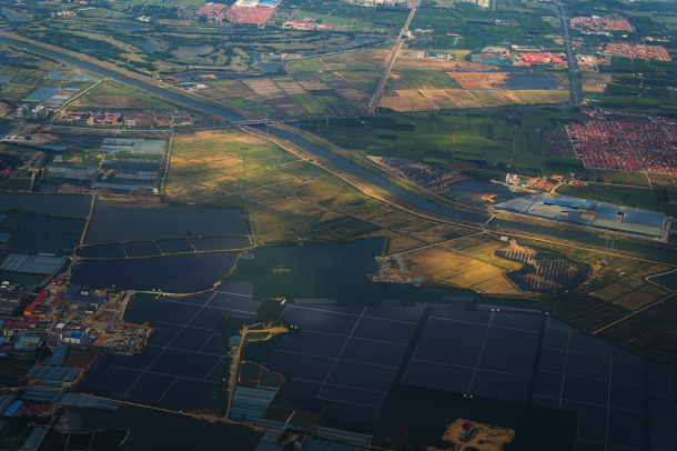 Solar panels near the Xiyuan River in China. An increased demand for electricity in China, in part due to the rise of AI, has made building clean energy infrastructure more important now than ever. (Photo: Davidzdh, Wikimedia Commons, CC BY-SA 4.0)