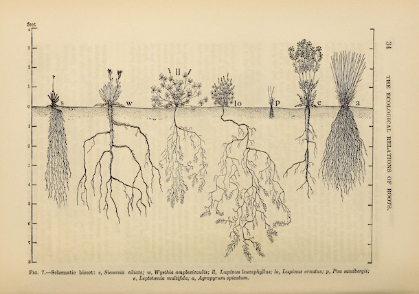 Prairie plants are highly effective at sequestering carbon because of their extensive root systems, which also help them withstand wildfires and prevent erosion. (Photo: John E. Weaver, Wikimedia Commons, Public Domain).