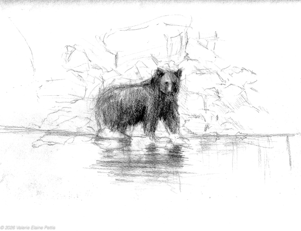 Valerie Elaine Pettis, artist and wife of Mark Seth Lender, draws the grizzly spotted in Yellowstone National Park. (Photo: © Valerie Elaine Pettis)