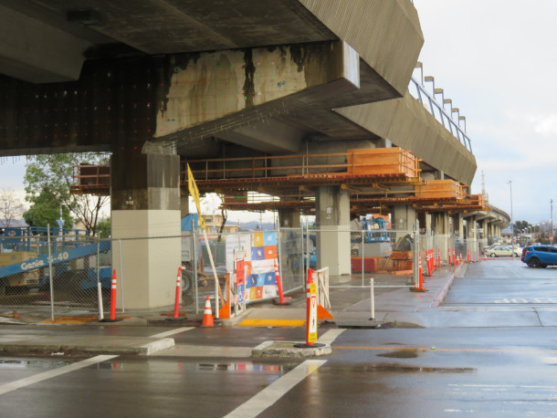 Shown above is seismic refit work, to protect infrastructure from potential earthquakes, being done at Fruitvale station in Oakland, CA in March 2018. (Photo: Pi.1415926535, CC BY-SA 3.0, Wikimedia Commons)