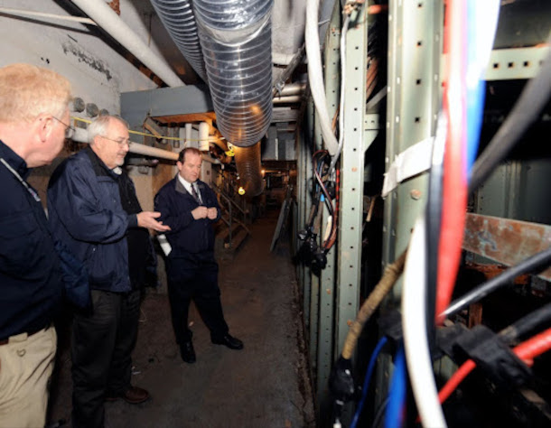 After Hurricane Sandy in 2012, then-FEMA administrator Craig Fugate (center) speaks about mitigation steps to Coney Island Hospital, which was badly damaged during the storm with seawater flooding its basement and emergency room. To his left is FEMA Federal Coordinating Officer Michael Byrne, and to his right is Coney Island Hospital Director of Facilities, Daniel Collins. (Photo: National Archives at College Park - Still Pictures, Wikimedia Commons, Public Domain)