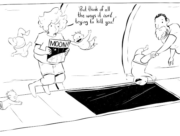 The particulars of human reproduction in lower-gravity environments than Earth require further scientific study to be fully understood. (Image: Drawn by Zach Weinersmith)